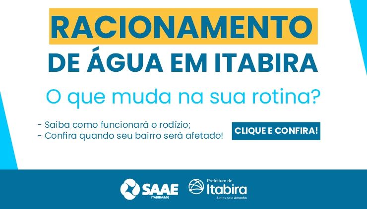 O Saae orienta para que a população utilize a água com racionalidade, evitando desperdícios. De acordo com a Resolução nº 228 da Arisb-MG, todo imóvel deve possuir caixa d'água com capacidade para atender as necessidades por, no mínimo, 24 horas.